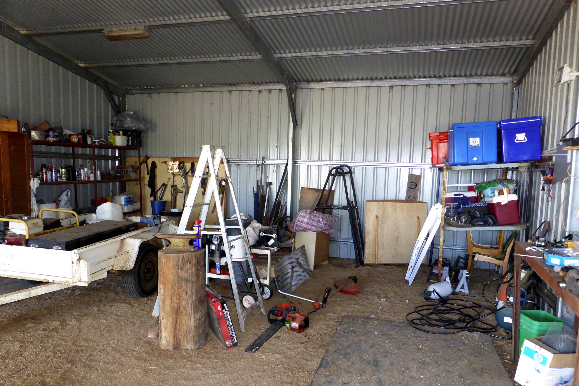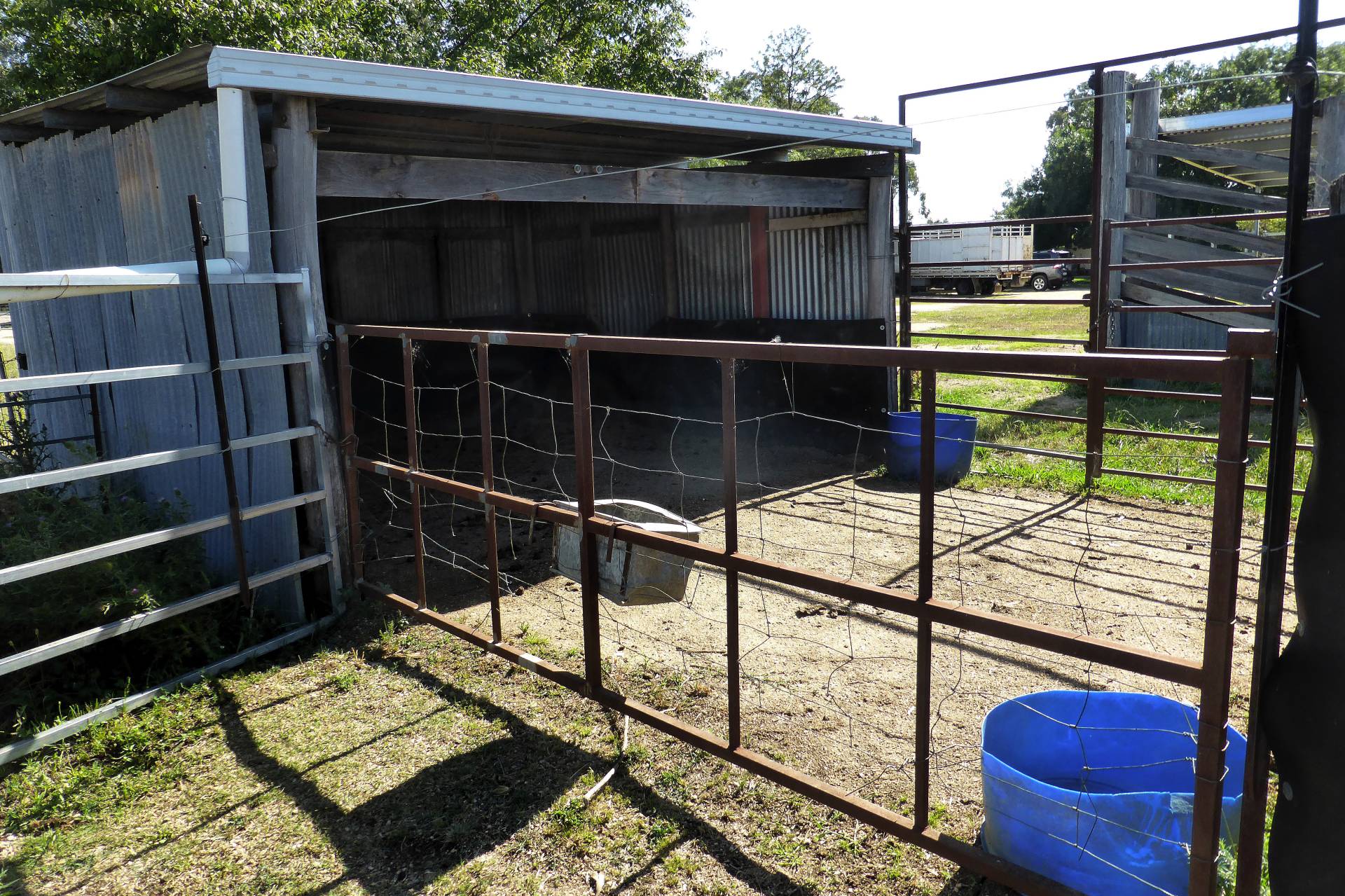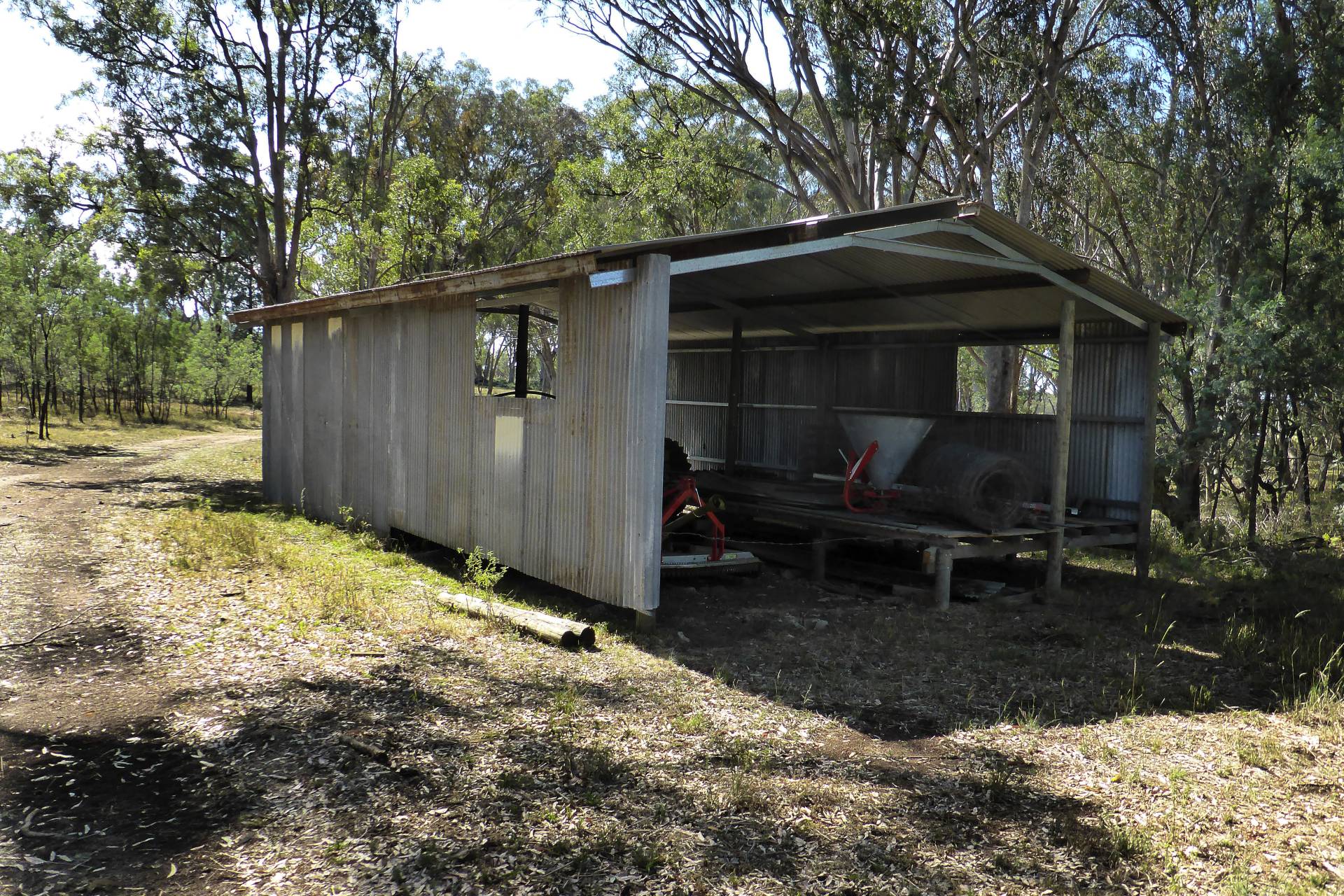 MACHINERY SHEDS:  4 Bay machinery shed with raised board, 2 bay feed shed, 4 bay shed with 2 bay lock-up power.