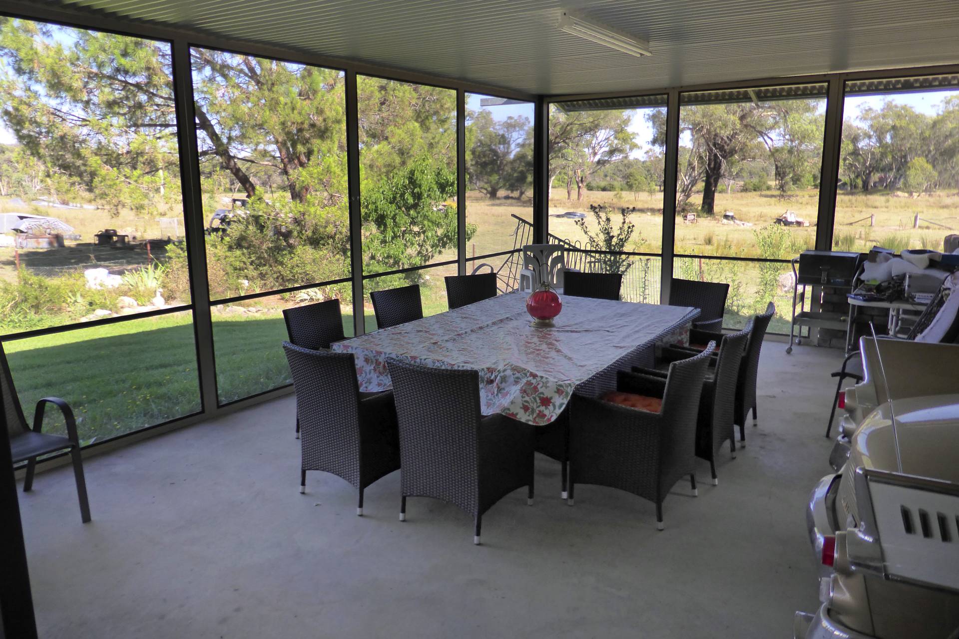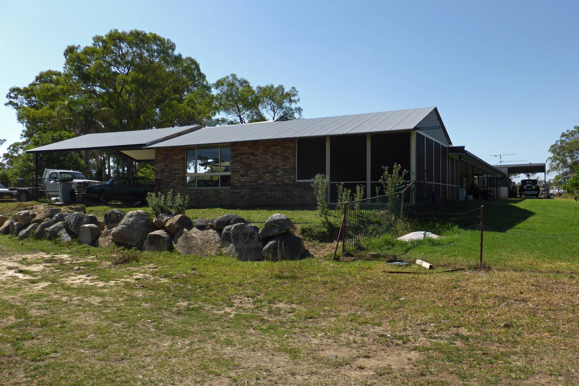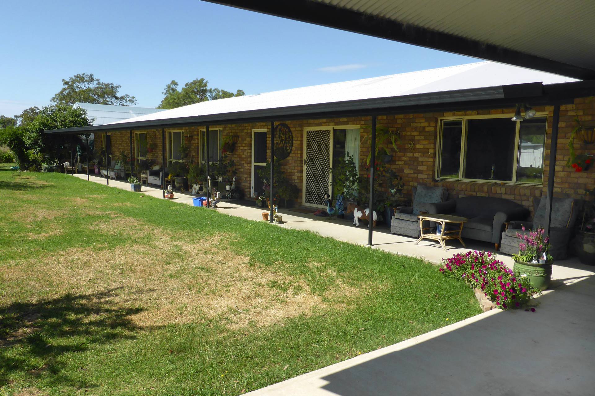 IMPROVEMENTS:  500m2 Double Brick homestead comprising 4 spacious bedrooms. Master bedroom with large ensuite. All bedrooms with built-ins. Modernised kitchen with timber cupboards. Large gas & electric stove, dishwasher. Family room with wood heater. Separate formal lounge/dining room. Tiled bathroom with bath & separate shower recess, separate tiled laundry. Large front & back verandas, gauzed in gazebo & BBQ area. Beautifully established gardens with watering system. Double garage, carport for 4 cars. Plus separate carport with cool room & industrial meat saw. 52,992ltr (14,000gal) rainwater tank.