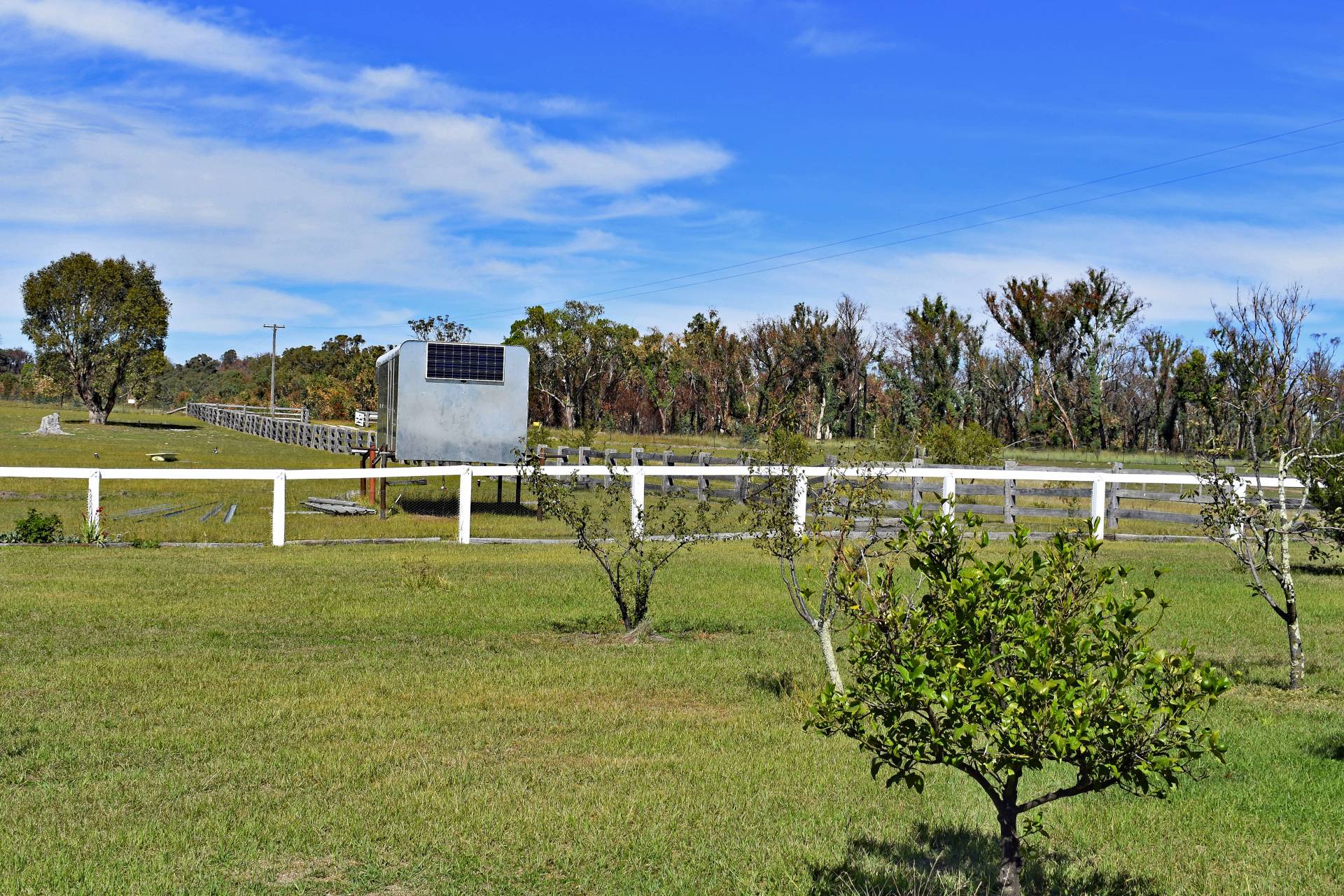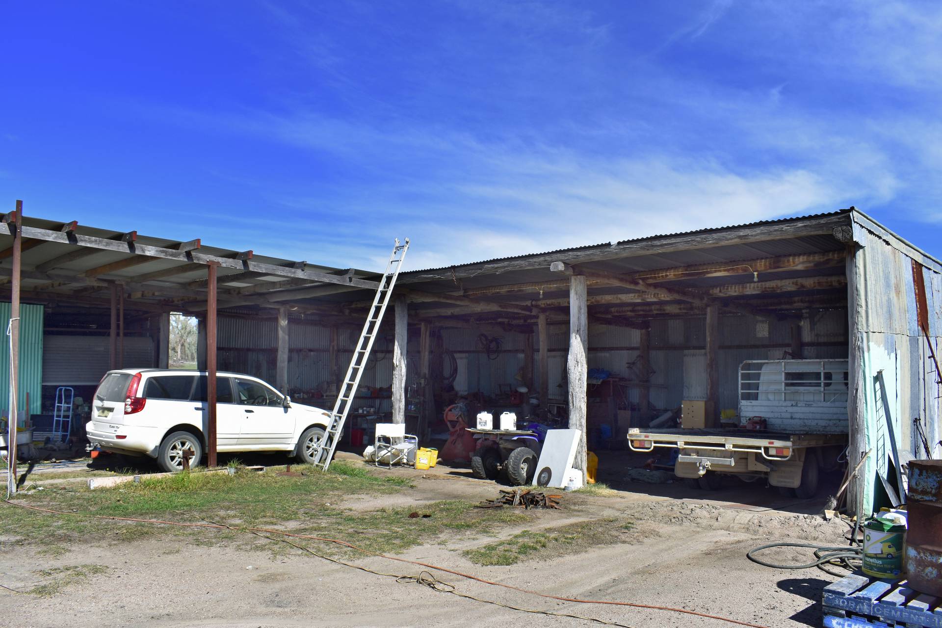MACHINERY SHED:  4 bay machinery shed with lock-up workshop. Large chook run. 30 tonne cone-base silo. 15m x 6m hay shed.
