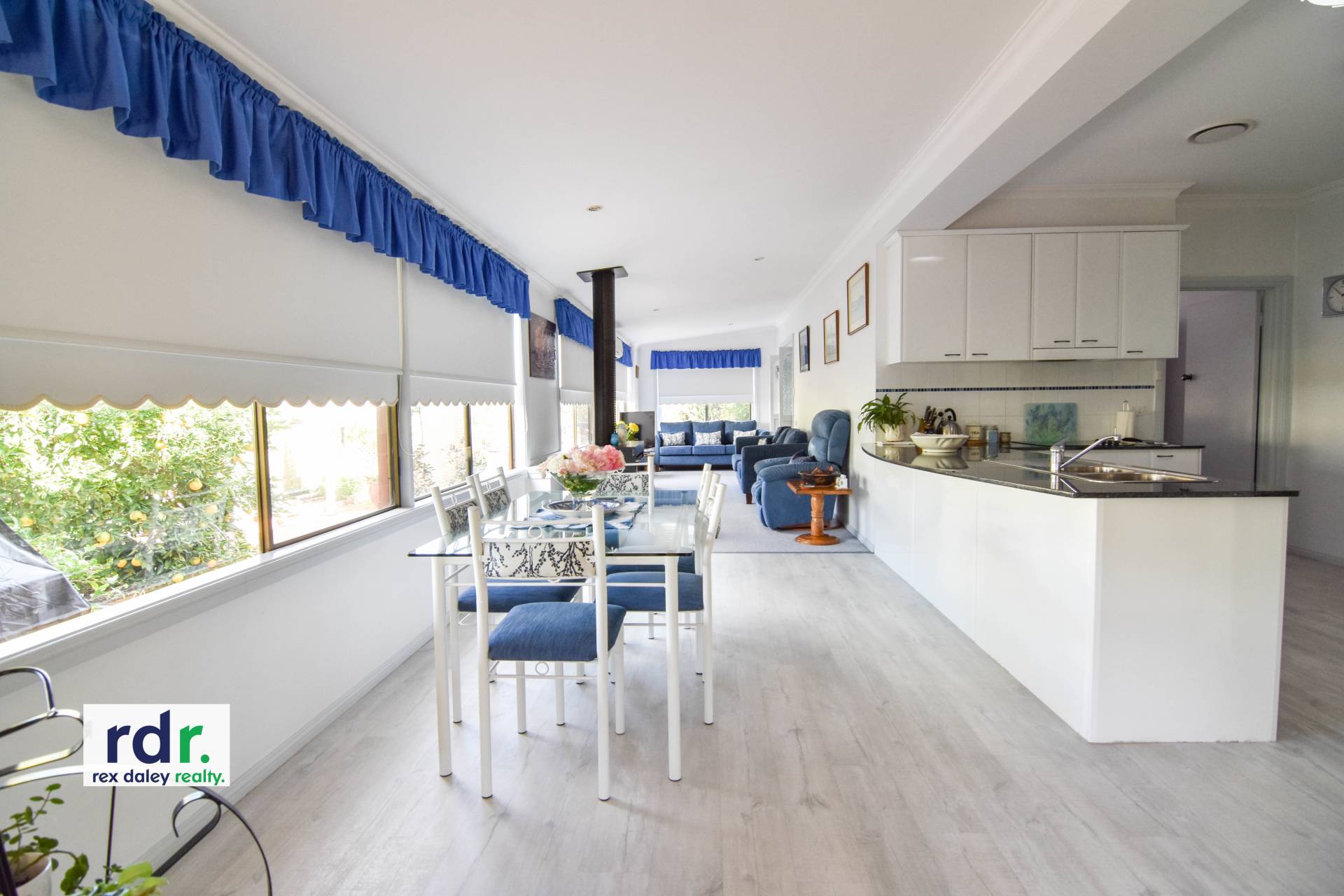 Relax and unwind in the beautiful sunroom, in the winter months snuggle near the gas log-fire heater and in the Summer cool down with the wall mounted reverse cycle air conditioner.