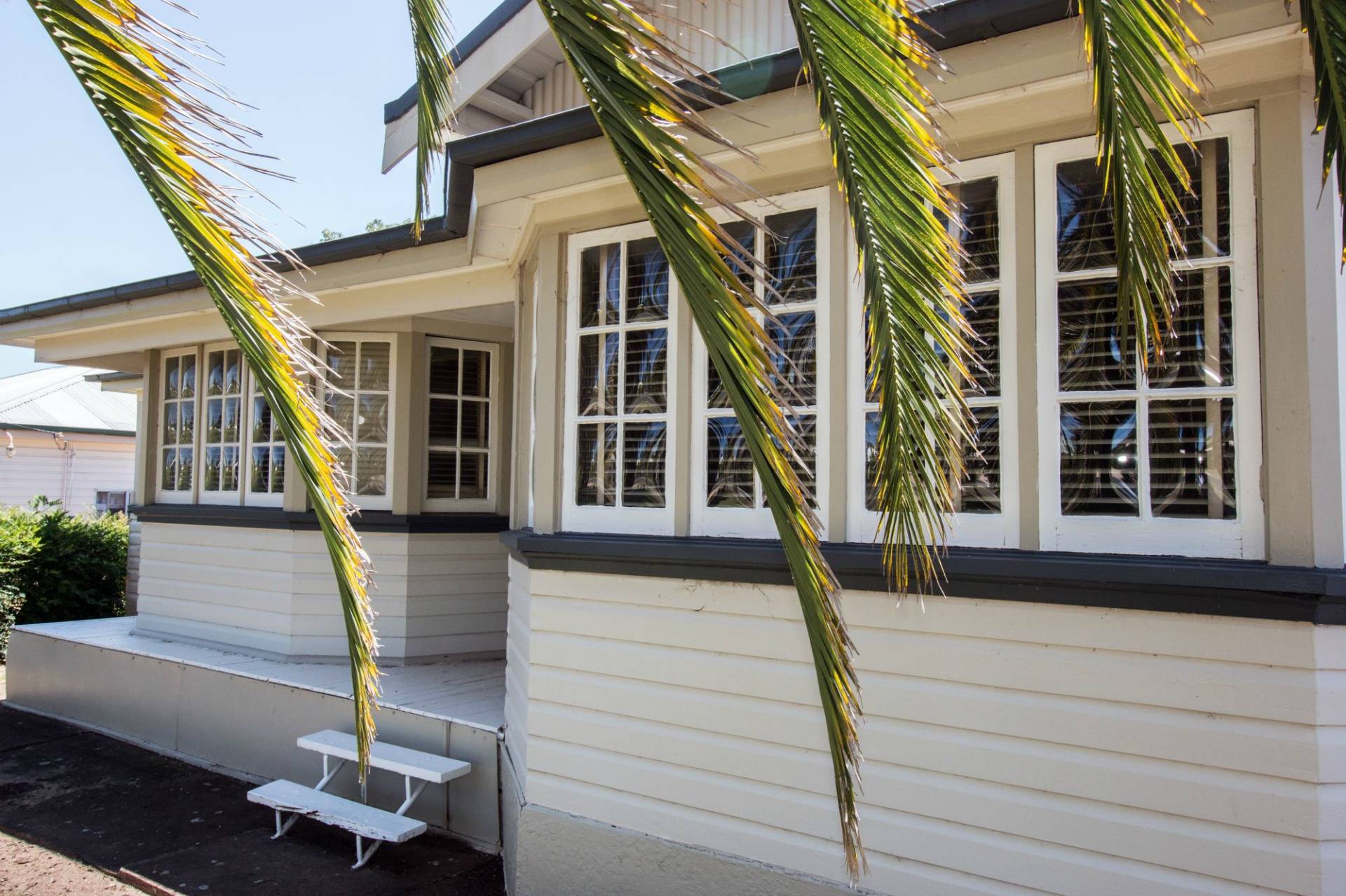Original timber framed, concave glass bay windows - dining room, living room, main bedroom.