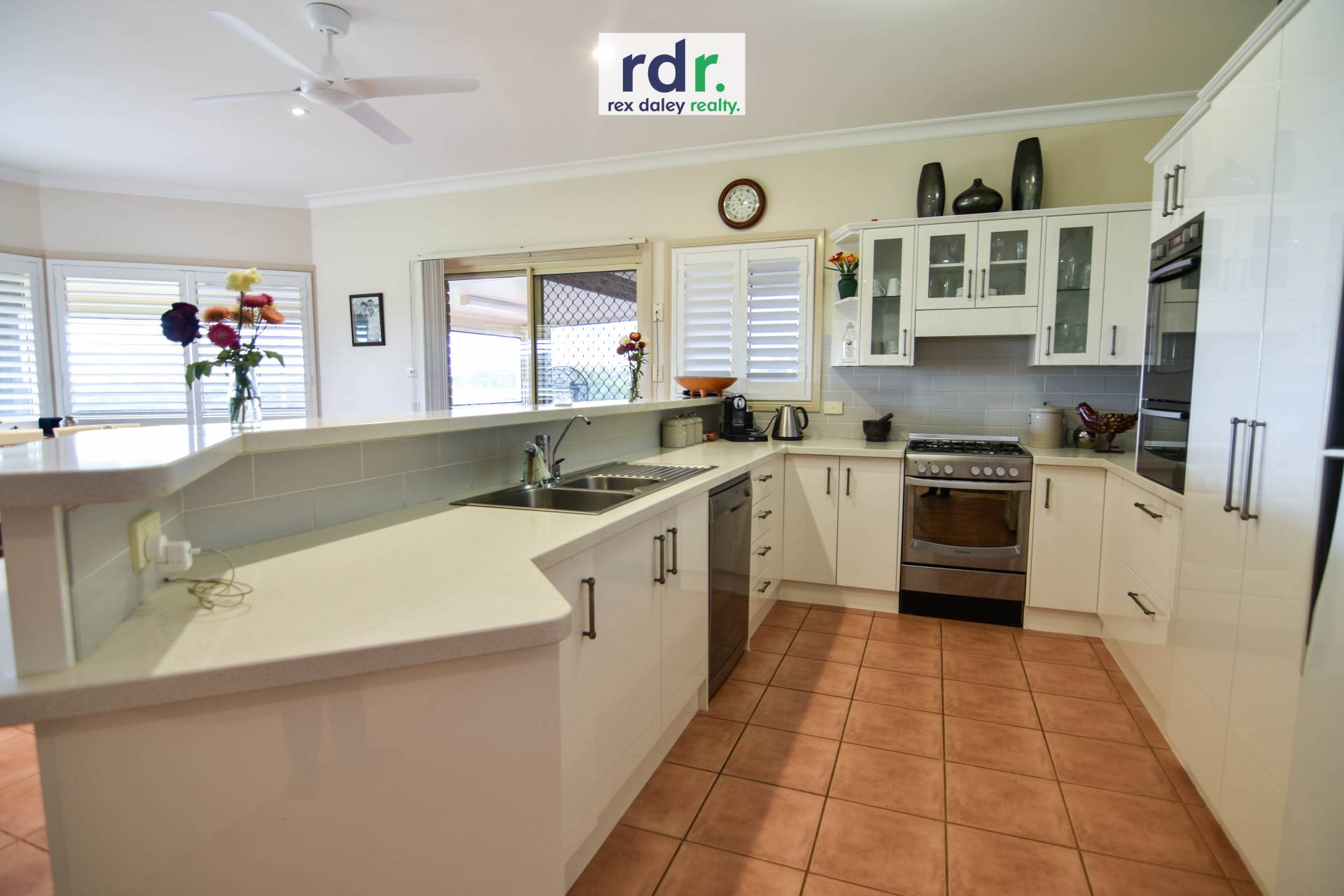 Caesarstone kitchen and dining area flows effortlessly from your living room and through to your gauzed sunroom. This stunning kitchen is fitted with quality appliances, breakfast bar, ample preparation space and lots of storage.
