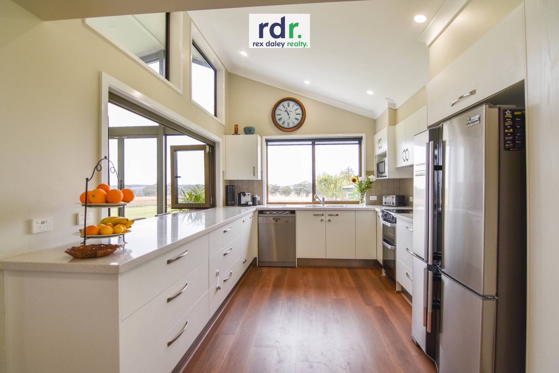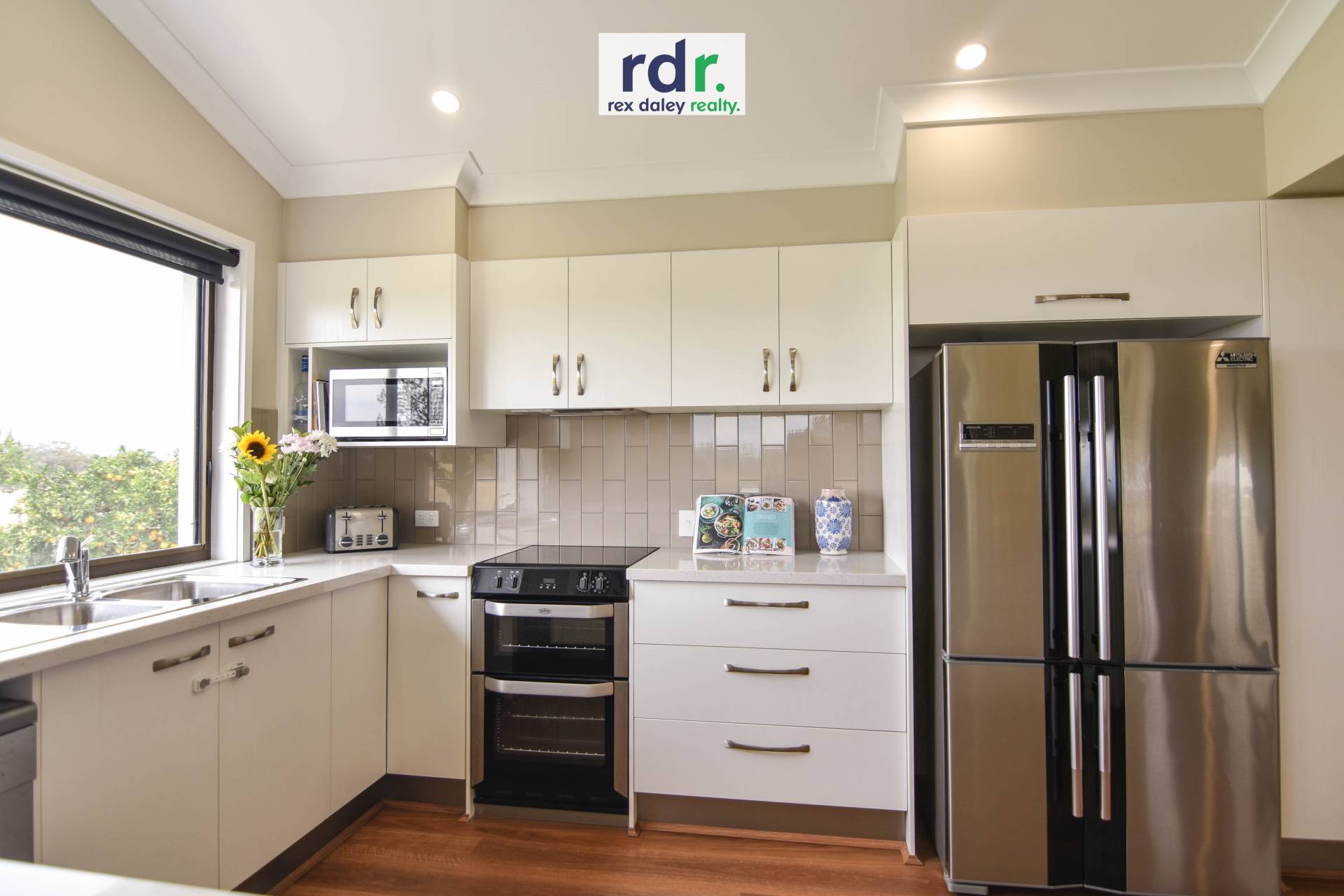 This sleek kitchen will be the envy of all your friends. Fitted with quality appliances, luxurious benchtops, soaring raked ceiling, double oven, dishwasher and servery window to your gauzed alfresco area, making this the ideal entertainer’s space. Open the glass sliding doors separating your alfresco area from the indoors to create one large entertaining space. Ceiling fans in your living area and alfresco will keep you cool in those warmer months.