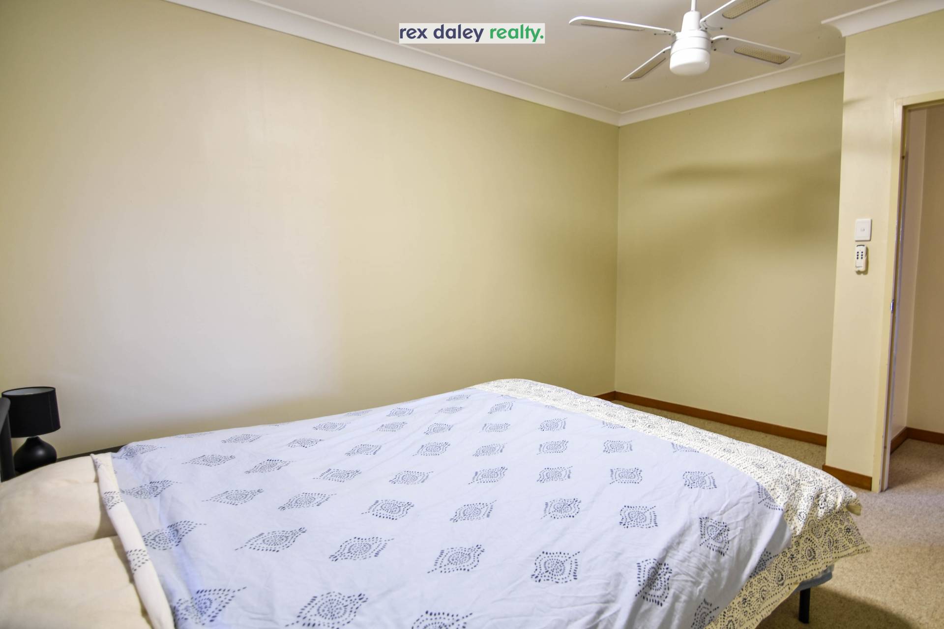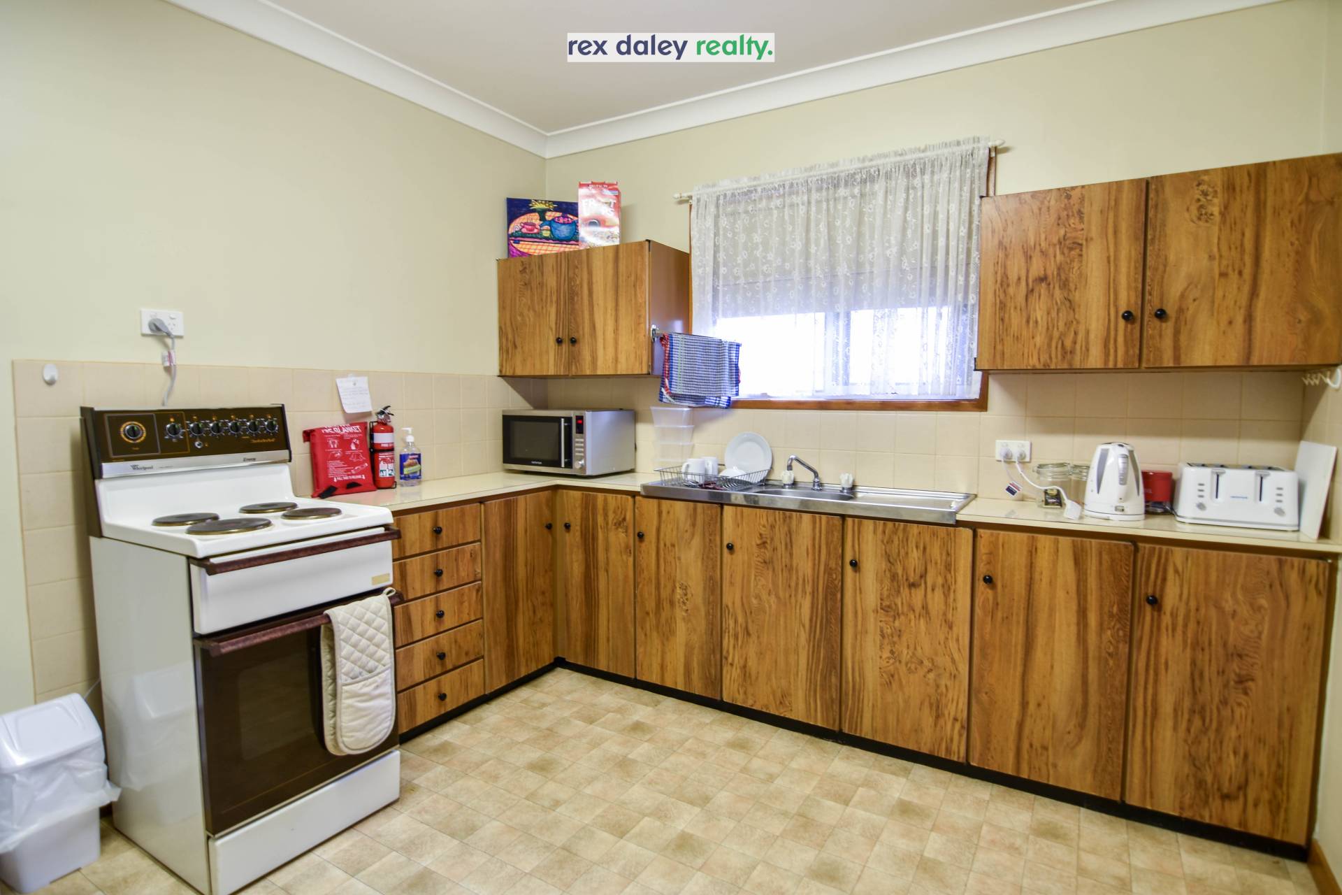 Generous living area with reverse cycle air conditioner and ceiling fan adjoins to your kitchen and dining area, with electric stove and abundant storage.