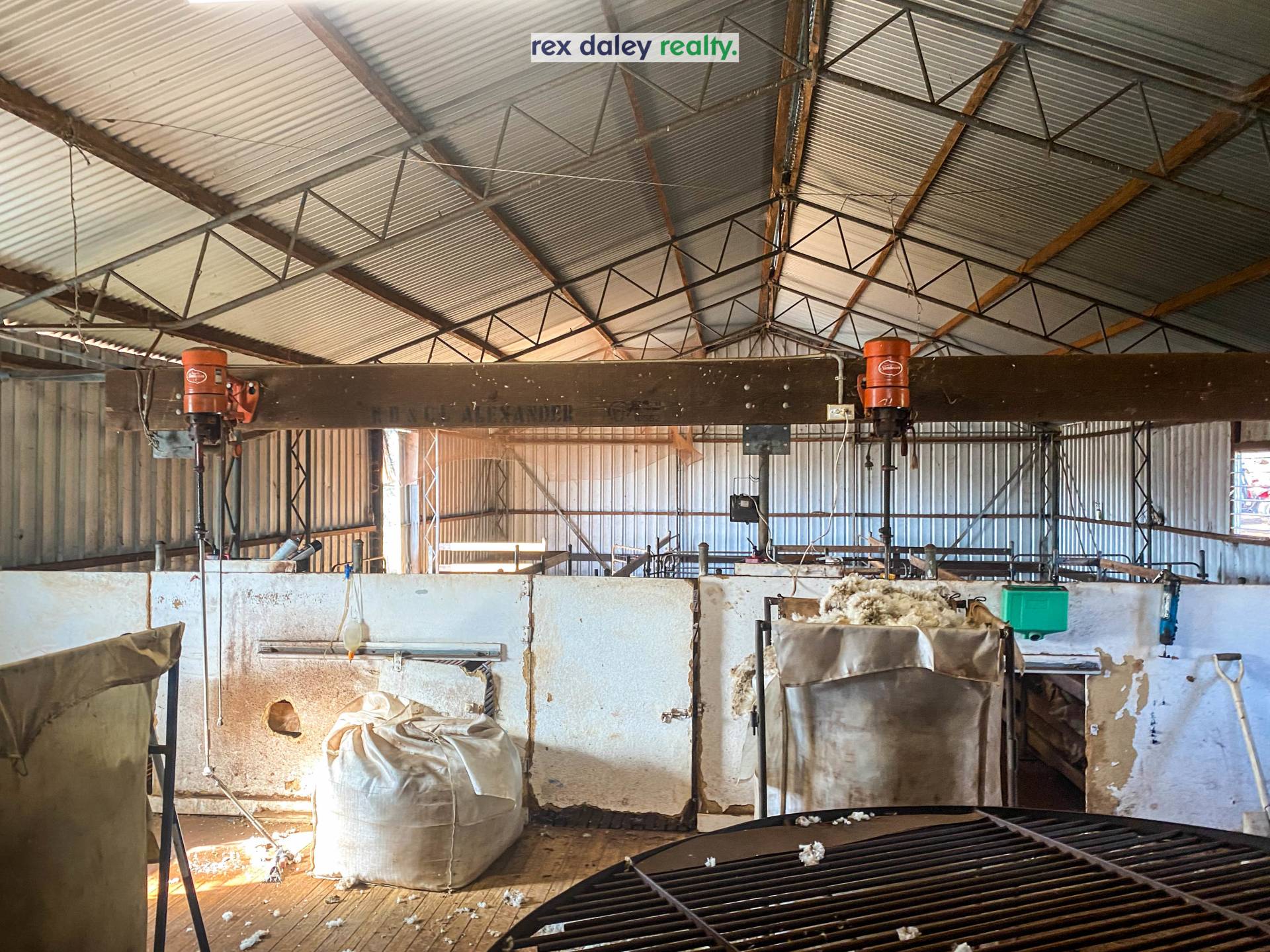 MACHINERY SHED:  Large machinery shed. 2 x 100tonne cone base silos. Wool shed.