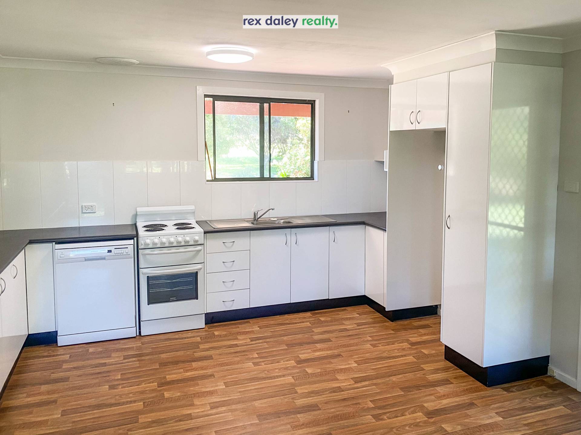 Spacious open plan living and dining flows into the updated kitchen containing ample cupboards, bench space, dishwasher and breakfast bar.