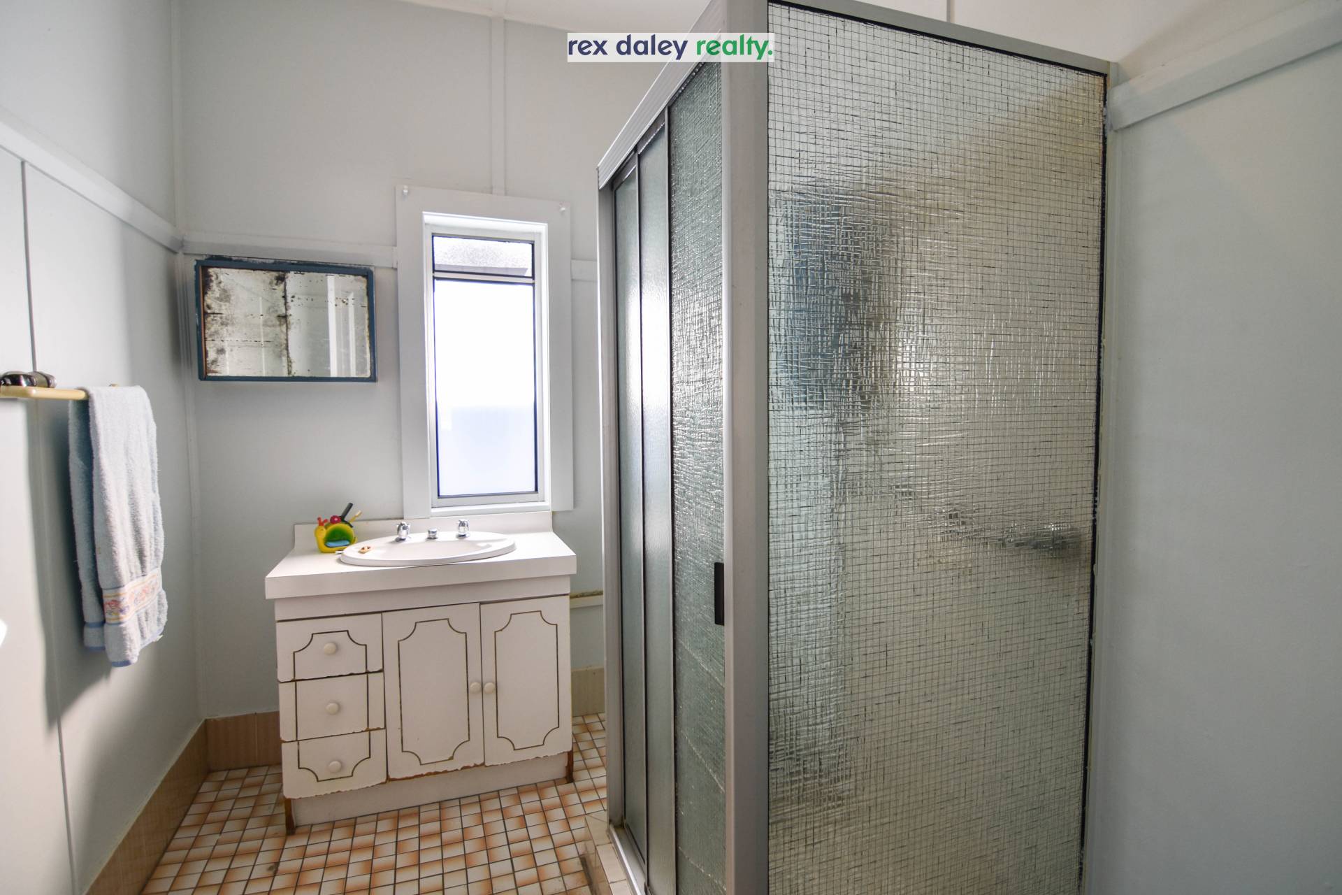 Bathroom contains shower and vanity, with separate toilet in the laundry.