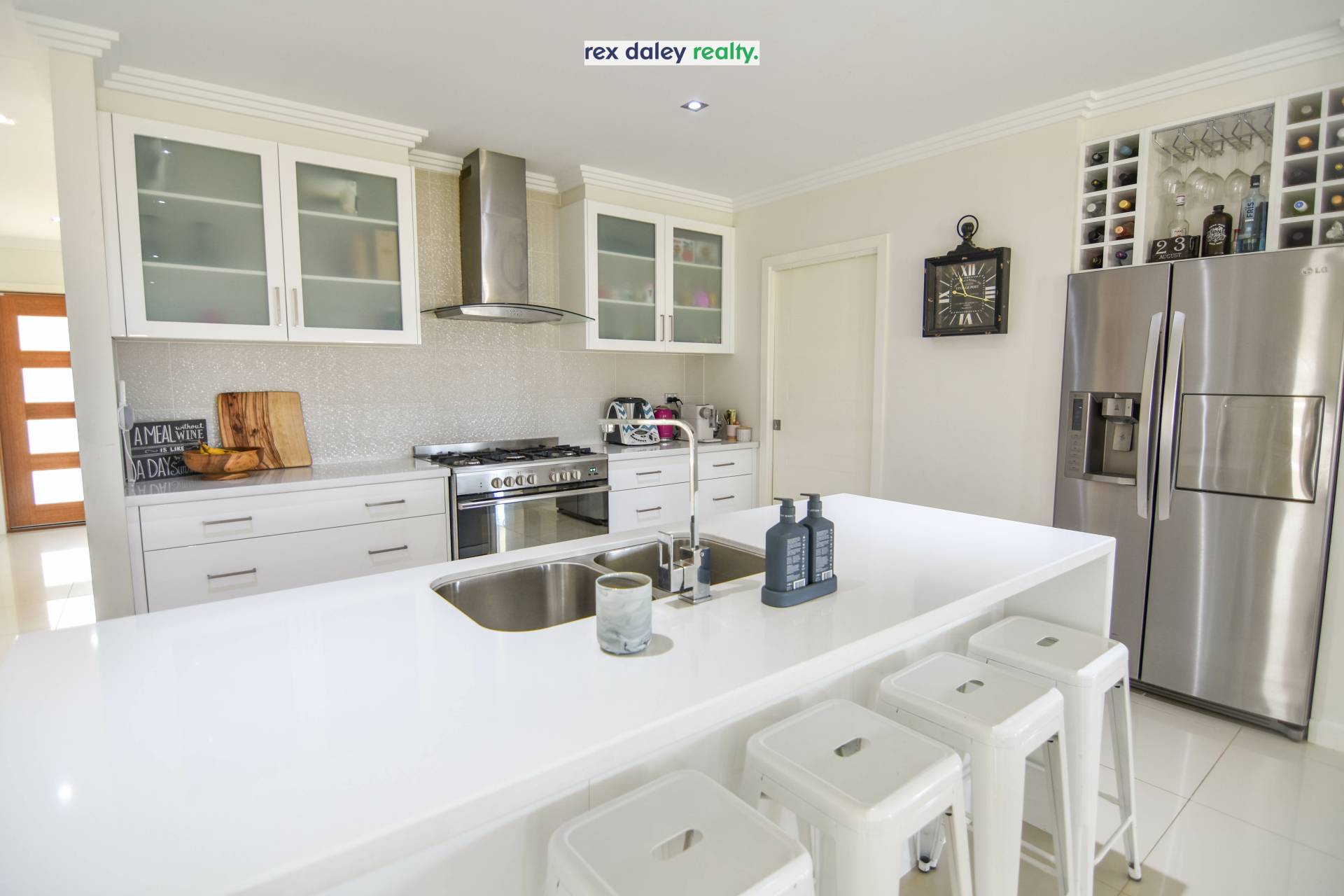 Stylish galley kitchen makes cooking a breeze and comes complete with quality appliances, ample stone benchtops, waterfall breakfast bar and plenty of storage including a large walk-in pantry.