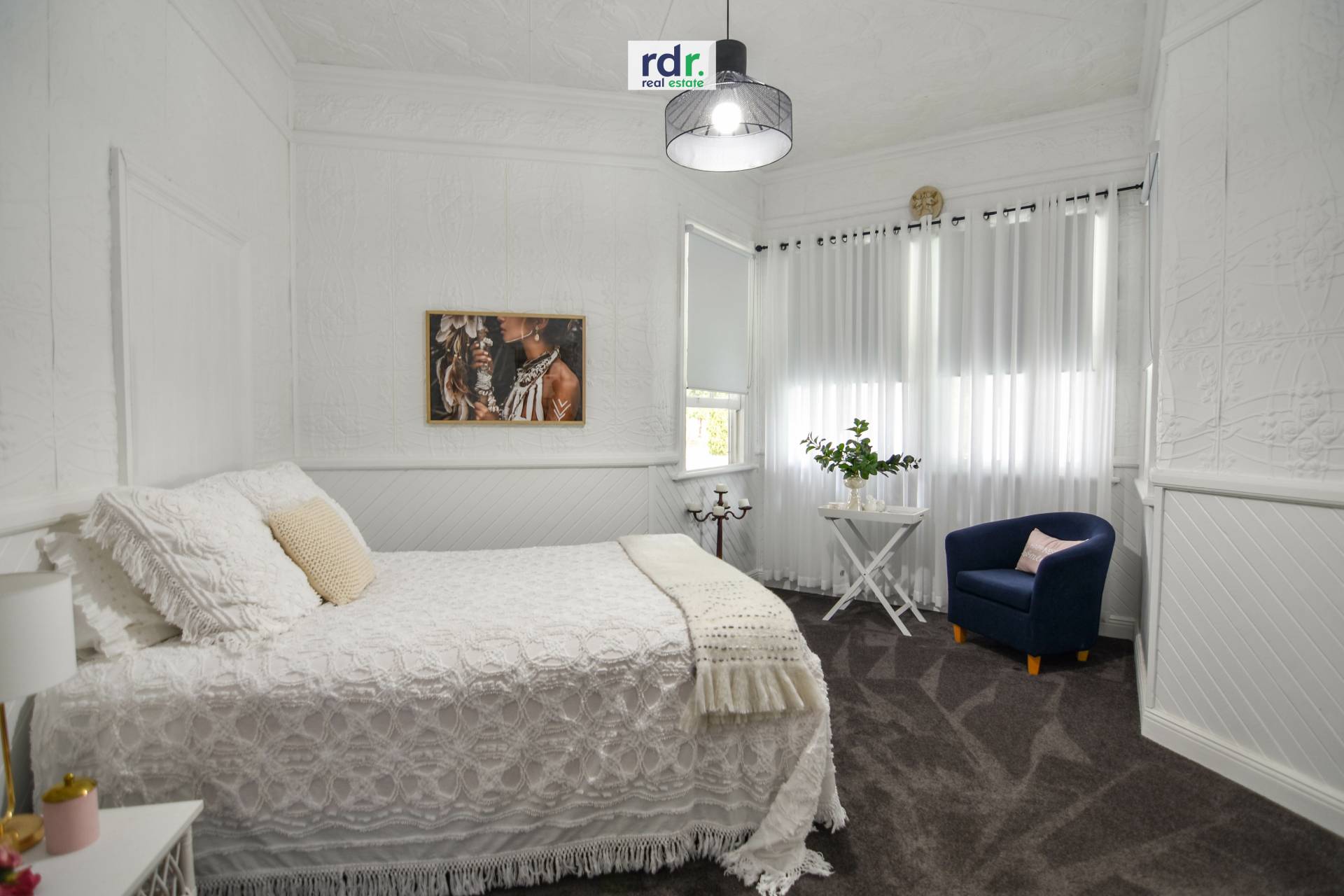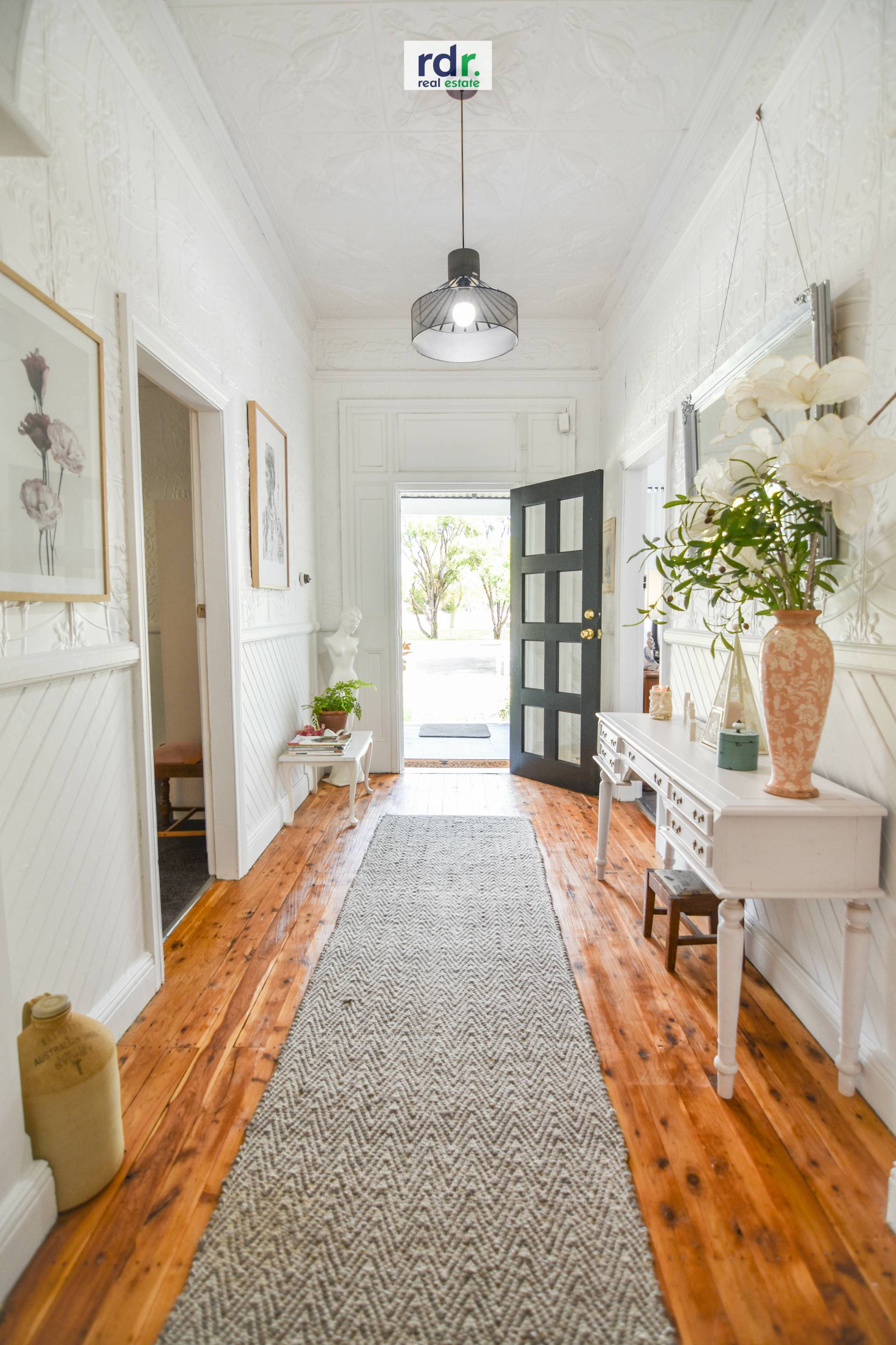 Inside you will find the perfect combination of old and renovated to continue with the appreciation of all its original glory. As soon as you step in the front door, your attention will be captured by the impressive restored timber flooring, high ceilings and timeless pressed metal throughout, as well as the featured archway in the wide and welcoming L-shaped entry hallway. Timber wraparound front verandah allows access into the home from the front and side.