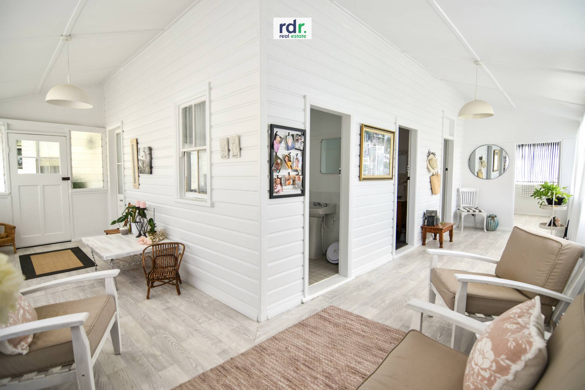 Sun-filled L-shaped sunroom/home office opens out to a lovely timber deck where you can bask in the sunshine any time of the year.