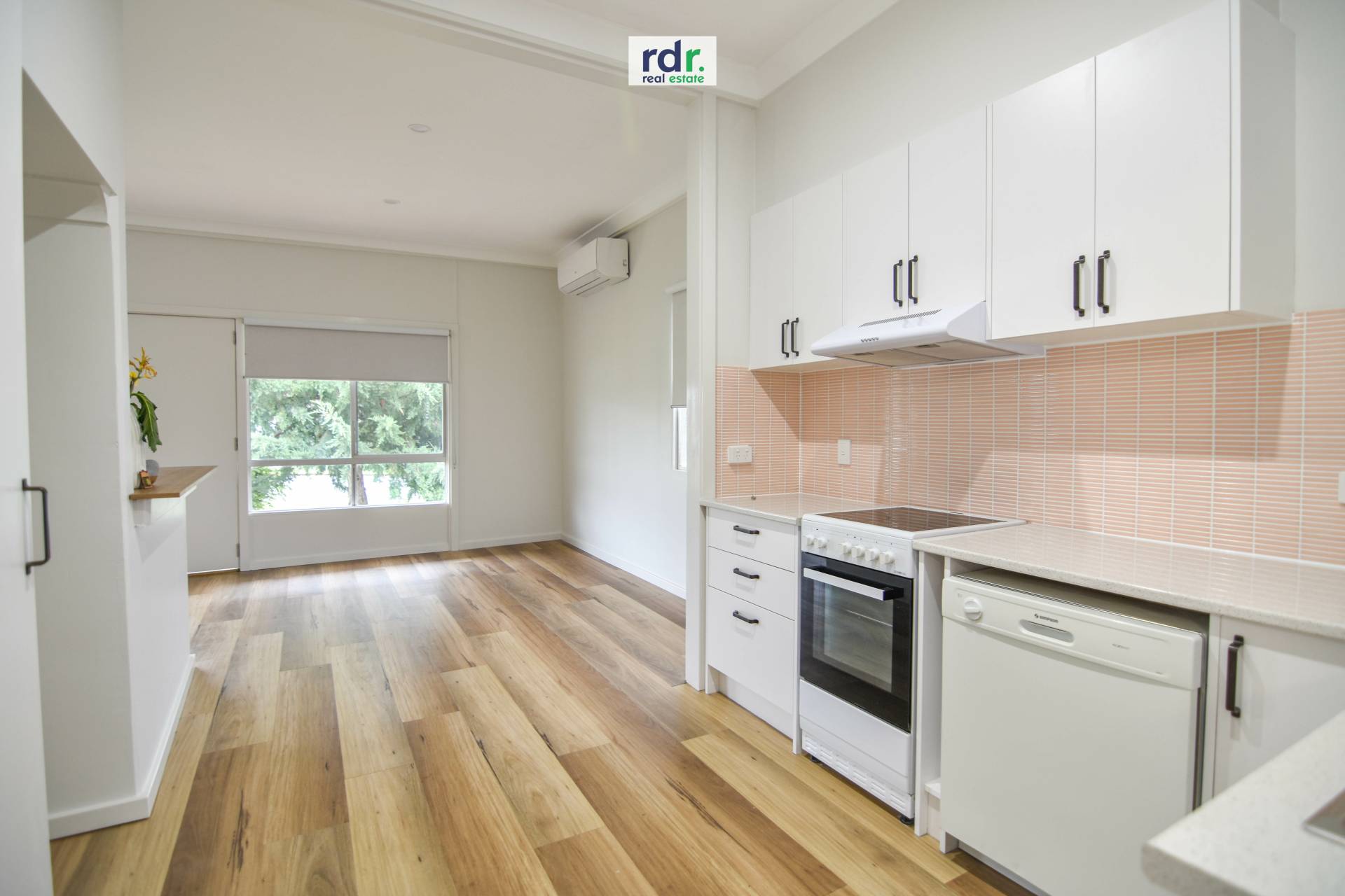 Open plan lounge, kitchen and dining area has large windows to allow in natural sunlight. Ceiling fan and reverse cycle air conditioner for comfort no matter the temperature outside.
