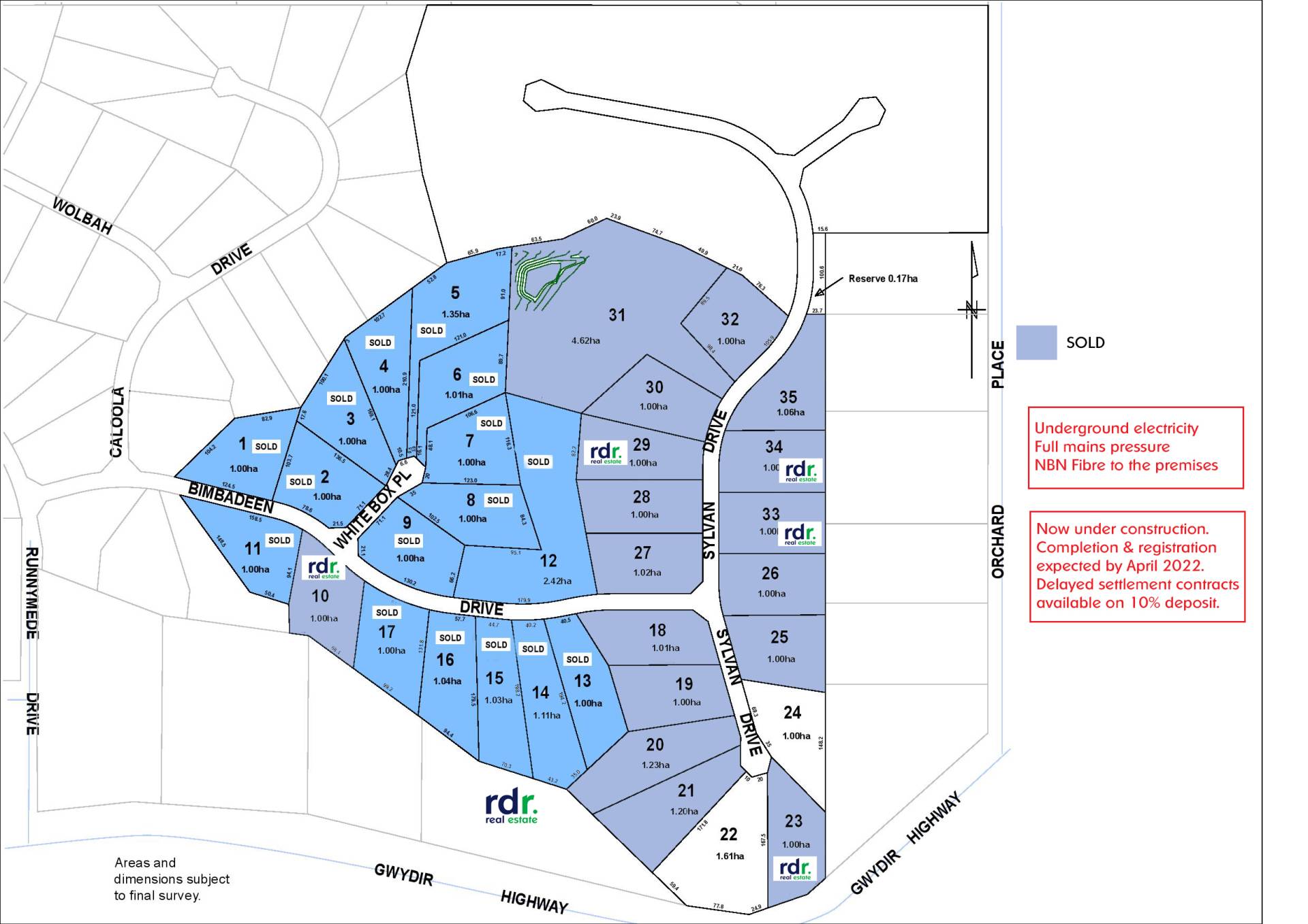 All blocks are 1hectare (2.5acres) in size, with the exception of Lot 31 being 4.62ha (11.5acres).