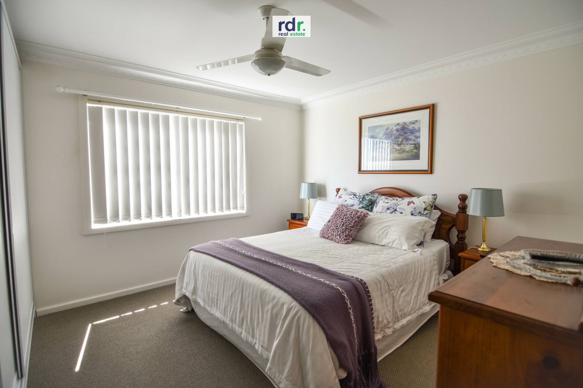 3 carpeted bedrooms, each with built-in robes and ceiling fans