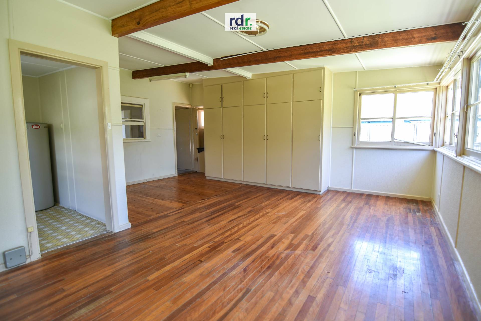 This home comprises of a large living area with beautiful polished timber floorboards and an abundance of storage, a second lounge and dining area with large timber doors opening to your front patio, and an older-style kitchen.