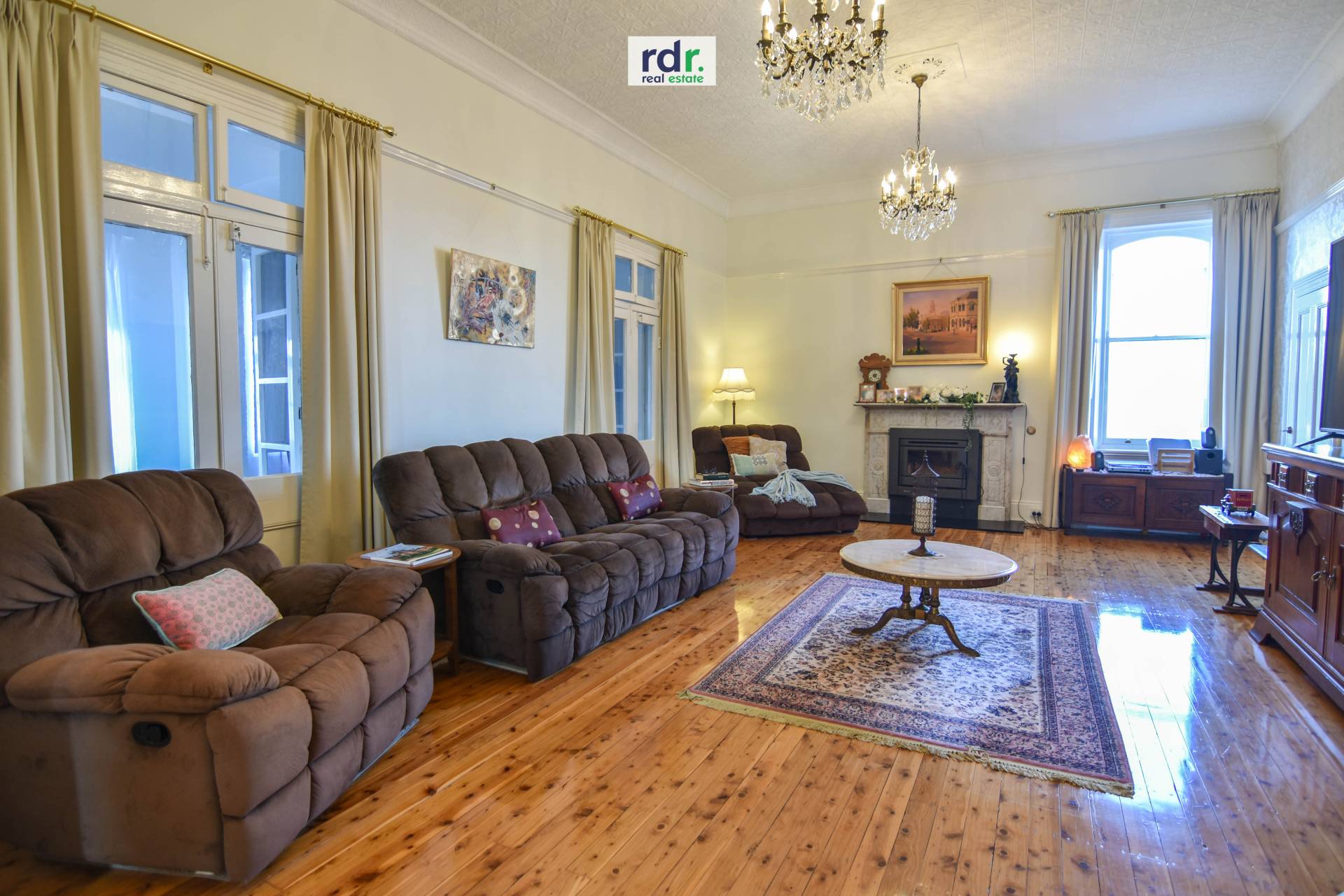 Imagine the parties and dinners that have been hosted in the formal lounge and dining rooms, with marble fireplaces, polished timber floorboards, crystal chandeliers, reverse cycle air conditioning and French doors leading out to the sunroom, which is wrapped in windows for beautiful natural light and to enjoy views of the town centre. Unique feature of this property is the maid’s bell that is still in the wall next to the fireplace!
